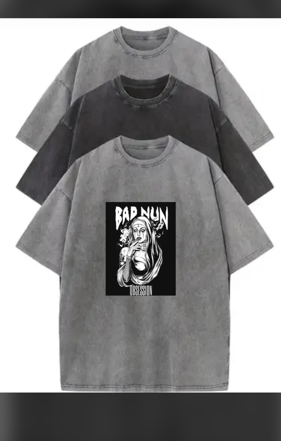 Casual Round Neck Tees with Drop Shoulder printed “BAD NUN”